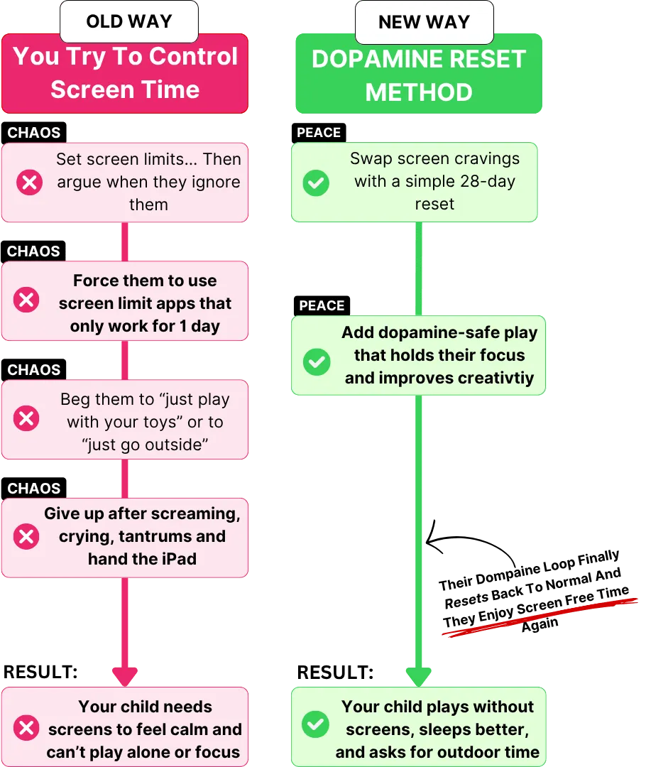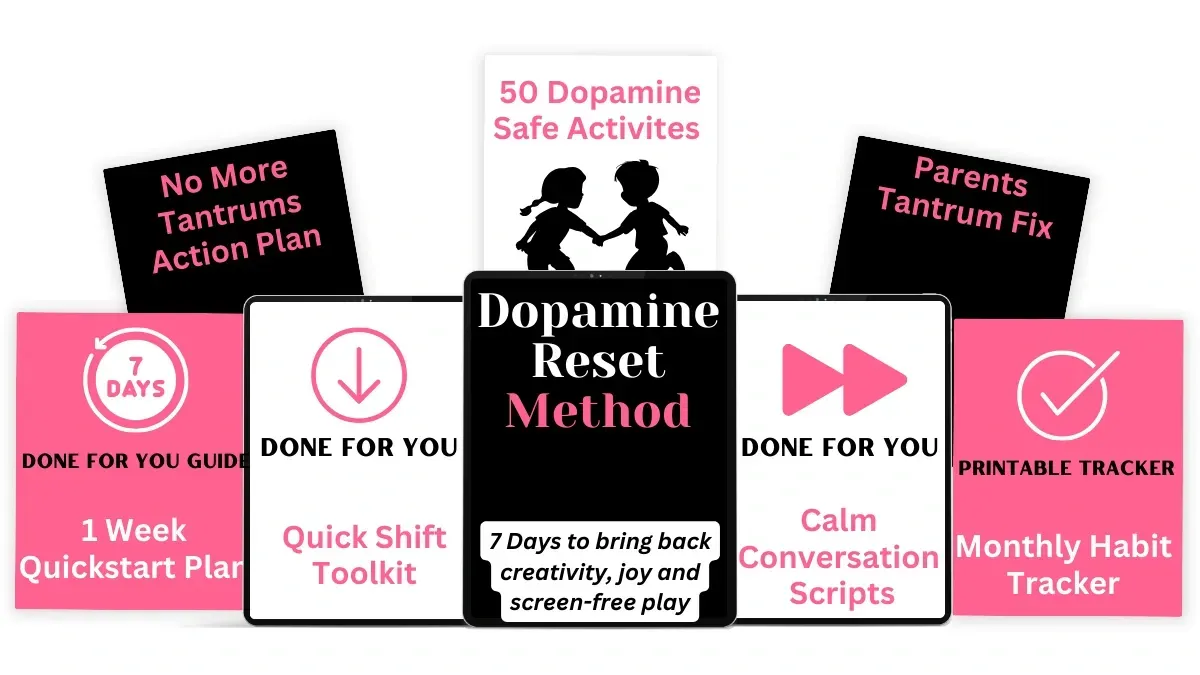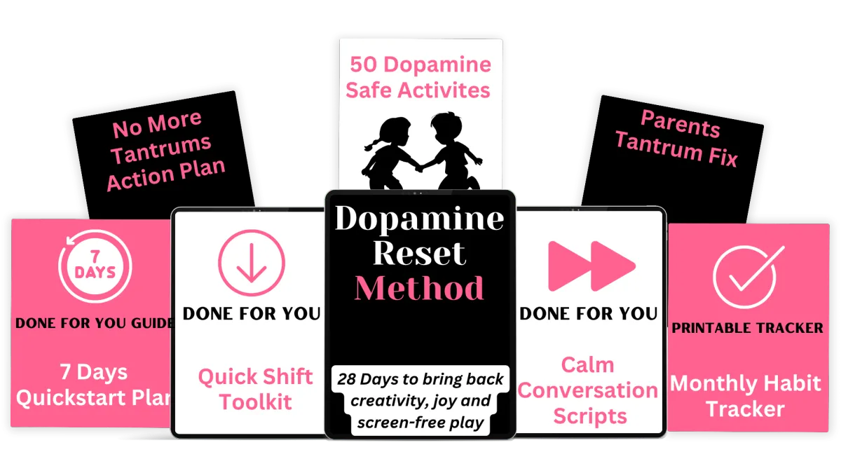 The Dopamine Reset Method is designed for kids between 2 and 12 years old. That’s the age range where screen habits form fast and where routines can still be shifted with gentle, play-based strategies.